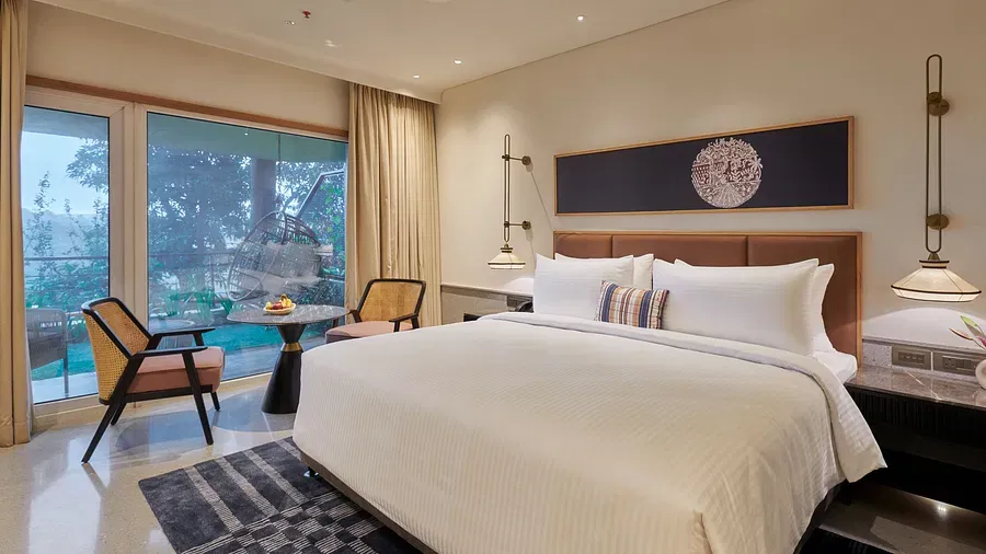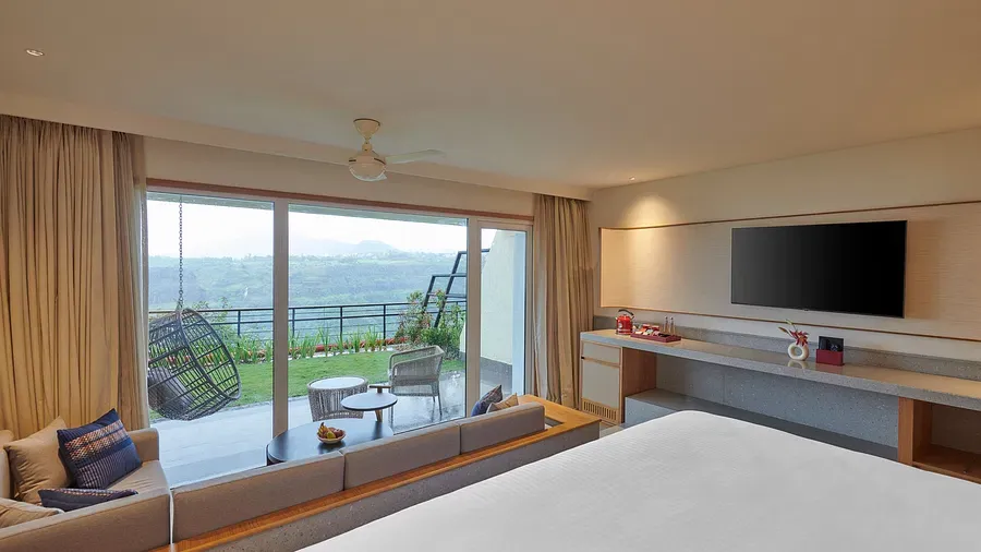 Start your day with stunning valley views from your open balcony in our 597 sq. ft. Khandala Suites. The suite offers a spacious living area, a comfortable bedroom, and a luxurious bathroom, all designed for ultimate comfort and relaxation. It’s the perfect retreat where nature’s beauty blends seamlessly with modern elegance.