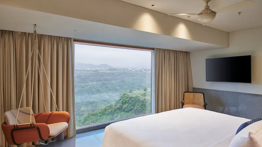 Experience the serene charm of our 322 sq. ft. Valley View Rooms, offering breathtaking views of the Khandala valley. Located on two levels overlooking NH4, these rooms are designed for comfort with modern amenities.